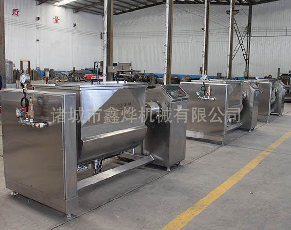 本機(jī)的U形鍋頂部抽真空,夾套采用蒸汽加熱,無段變速與蝸輪,減速機(jī)的組合傳動(dòng),增大了橫軸攪拌的力矩,采用食品級(jí)材質(zhì)材質(zhì)刮板的攪拌器,在物料的翻滾攪拌過程中,攪拌器與鍋體的充分接觸,確保了無攪拌死角。鍋體的開蓋,卸料,復(fù)位采用液壓,機(jī)械傳動(dòng)控制,操作方便。真空炒制可降低炒制溫度,特別適應(yīng)于高粘度材料的炒制,避免了因過度受熱引起色澤及口味的變化,保持了物料原有的色香味。提高了炒制效率,并降低能耗,縮短了炒制時(shí)間。
